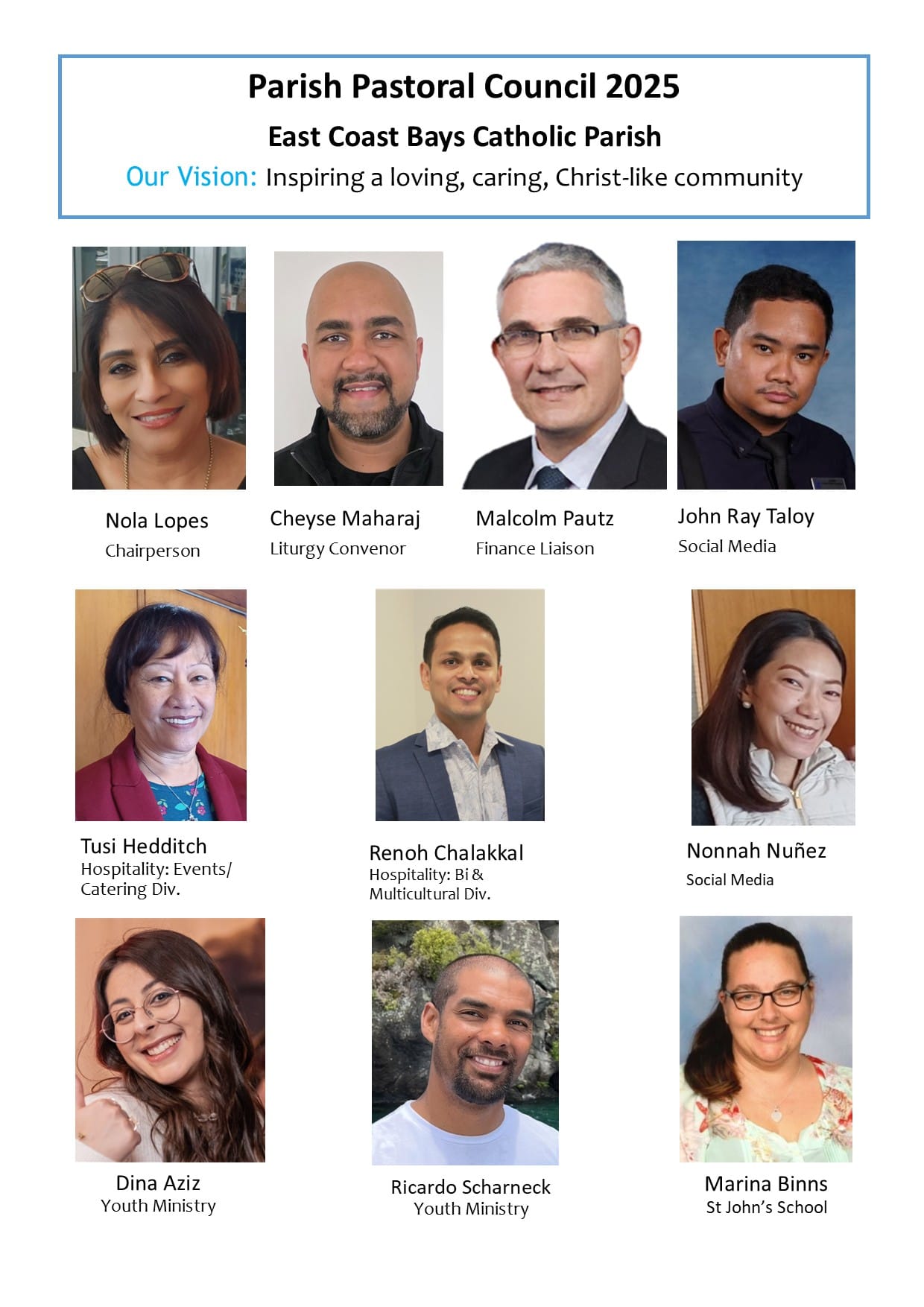 Members of the Parish Pastoral Council work collaboratively with the parish priest to set the vision, plan the missionary endeavors and enable their community of faith to proclaim the message of Jesus.