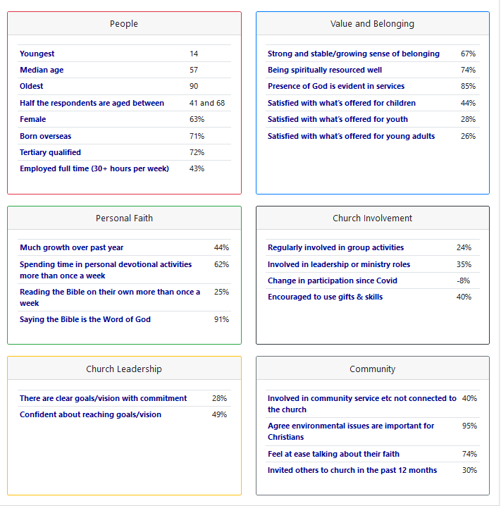 The 2023 Church Life Survey NZ was a nationwide survey of church attenders. Every church across New Zealand was invited to take part.